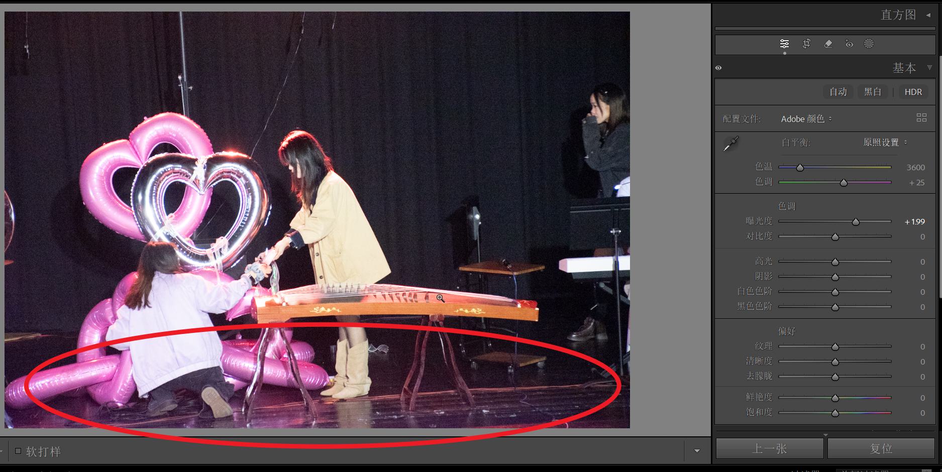 而在修图的过程中,需要注意的是,确保影调正常的情况下,尽量还原现场的氛围,基本上加一个暗角、把曝光稍微调亮一些、演员的皮肤调白皙一些能够适配绝大多数人的审美。